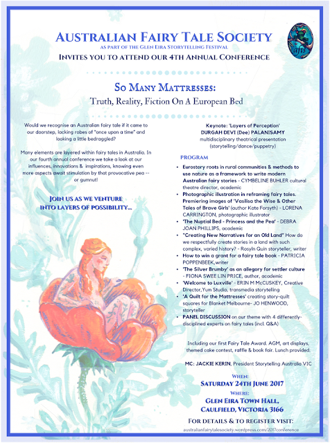 If you have enjoyed past issues, would like to see more (upcoming fairy tale themes are: Goose Girl, Aladdin, The Handless Maiden, Snow White, Wild Swans/Six Ravens, The Firebird) and could offer some help, please contact the AFTS at austfairytales@gmail.com.