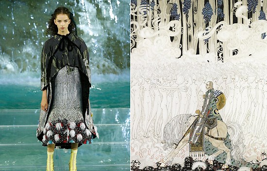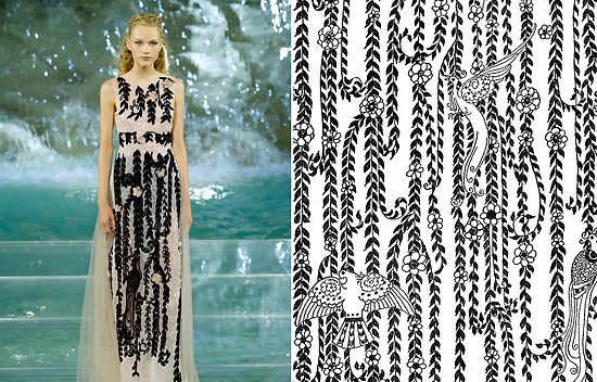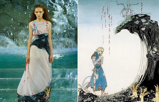 I am IN AWE! The DETAILS! The gorgeous woodland nymph feeling, but then the tying in to the darker side of the tale with the blood !!! THE LAYERS!! The fact that they made such a stunning, woodland nymph type of dress but still referencing the inherently macabre nature of fairytales.